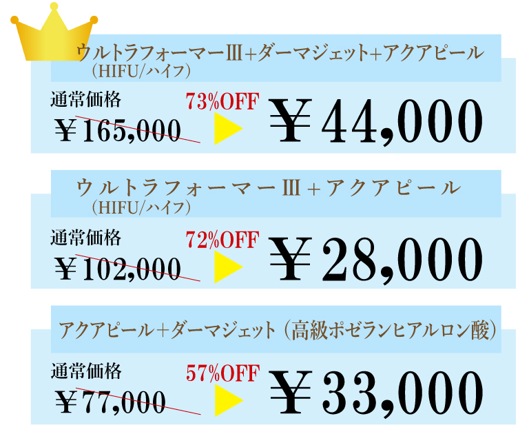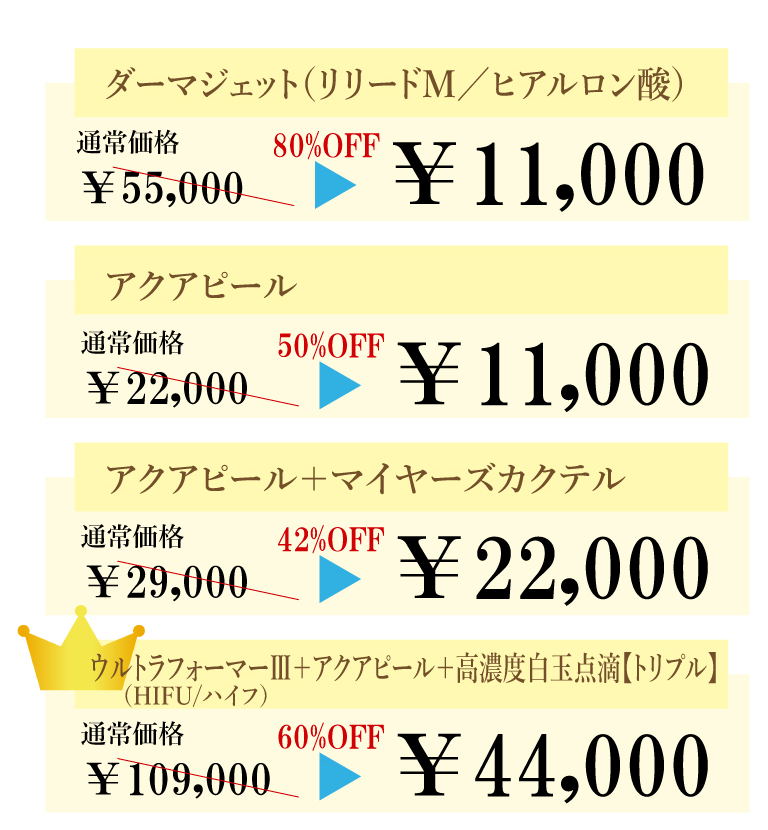 | ヒアルロン酸(カクテル注射)〈プレミアム〉ポゼラン(3.0cc)+リリードM(3.0cc) | ¥99,000 |